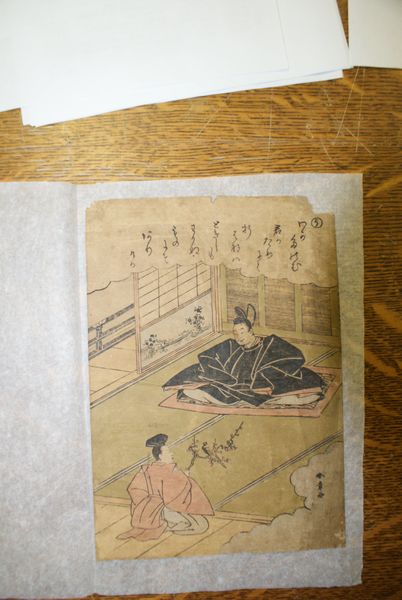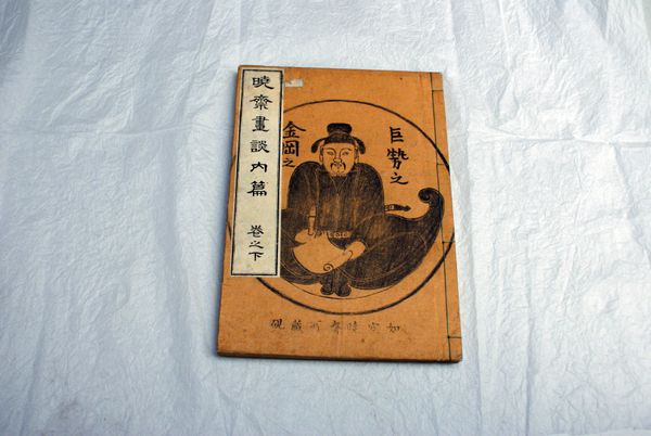 This is the cover of *Kyōsai Gadan*, a book by Kawanabe Kyōsai from the late 19th century, and it presents us with a seated figure encircled, laden with symbolic weight. Consider the image of the seated man. He recalls similar figures from across time and cultures, such as depictions of philosophers or deities in contemplative poses. His serene countenance belies a deep connection to the wellspring of human wisdom. Encircling him is a motif akin to the *mandorla*, often seen in religious art to denote a sacred space, a vessel containing divine energy. Such symbolism isn't confined to any single culture. We can trace it back to ancient Greece and forward to the Renaissance. These recurring motifs remind us of the cumulative power of images and our deep-seated emotional engagement with them. These images tap into our collective memory, resonating with something primal within us. The simple act of seeing this figure stirs a complex web of associations, shaped by centuries of cultural transmission.