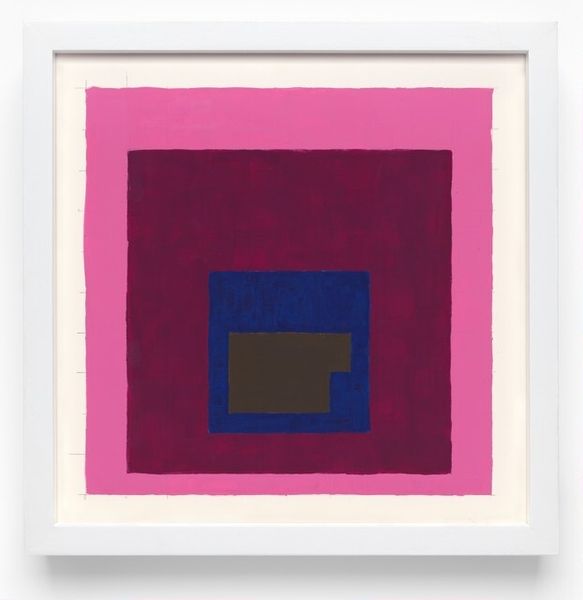 Curator: Standing before us is "Small painting l," crafted in 1964 by Edward Avedisian, rendered in acrylic paint. Editor: Immediately, that relentless yellow—it's so aggressively cheerful, almost synthetic. And the shapes… basic. I'm curious about the production of such seemingly simple gestures. Curator: It’s compelling to view this within the context of its time. Avedisian, while often associated with Pop Art, engages with the Color Field movement here, participating in that moment’s dialogue regarding abstraction’s role and possibilities post-Abstract Expressionism. Editor: Abstraction, yes, but through such… clean lines. The acrylic, the evenness, no visible brushstrokes. The process feels removed from the artist’s hand. Was Avedisian commenting on industrial processes? The means of mass production applied to art? Curator: Indeed. The "hand" becomes less emphasized; instead, there’s a focus on pure color relationships and form. The socio-political landscape of the 1960s embraced consumerism, and this work perhaps mirrors that embrace, offering easily digestible visual information. The flat planes of color push the boundaries of visual engagement. Editor: But that's it exactly. It's almost TOO easily digestible. Are we meant to passively accept the colors, the shapes, the material's synthetic sheen? The labour put into stretching the canvas to prepare the material is hidden, no sense of toil. It has a distinct detachment. Curator: Detachment might be the point. This piece enters the cultural conversation about art's function, and what images the public ought to see and appreciate. How does art reflect and shape the rapidly evolving world of its viewers? Editor: But, perhaps unconsciously it becomes a symptom, right? The removal of labor, the celebration of surface... what is lost when the making is glossed over? We risk disconnecting from the very processes that give objects meaning. Still the flat surface, and use of materials engages and even pushes at the formal constraint of the field. Curator: A thought-provoking piece, offering a view into the mid-20th century's visual and social landscape, a fascinating lens to view that era. Editor: Agreed. It invites examination into our own values regarding materiality, production, and the continued quest for meaning within abstraction today.