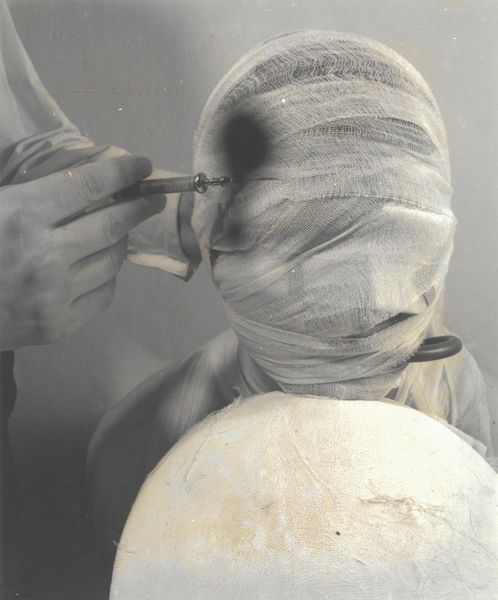 Editor: Alfred Stieglitz's photographic portrait, *Georgia O'Keeffe—Hands*, created sometime between 1920 and 1922. The close cropping makes the hands so central. What strikes me is the everyday, domestic nature of this image of a famous artist. What do you see in this piece? Curator: For me, this image resonates with symbolic weight far beyond the act of peeling an apple. Think about the hand: across cultures, it signifies creation, action, and connection. Stieglitz isolates O’Keeffe's hands, making them almost monumental. Notice the detail – the skin, the shadows, the texture of the fruit. Editor: I see what you mean. The monochrome print emphasizes the texture. It's so intimate, almost reverential. Curator: Exactly. Consider the apple too. Its symbolic history is laden with associations—knowledge, temptation, nourishment. By showing O’Keeffe carefully peeling it, is Stieglitz making a statement about the artist carefully crafting her art? Perhaps peeling away layers to get to the core of creativity? Editor: That's fascinating! I never thought about the layers of symbolism. Does the 'peeling' action convey something deeper, related to Stieglitz peeling away, revealing O'Keeffe, his muse? Curator: Possibly. It’s a question of what continuities or cultural memories the images call upon, or construct. What are your impressions? Editor: I now feel I'm viewing a complex visual metaphor. These aren't just hands and apples, but a story about creation, partnership, and the revealing of the artistic self. Curator: Precisely. Stieglitz captured more than just an image; he crafted an icon laden with personal and cultural meaning.