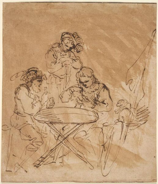 John Constable sketched "Mr. Hobson of Markfield and Family" with graphite and ink on paper. Constable lived during a time of immense social and economic change in England. The Industrial Revolution was transforming class structures, while the Napoleonic Wars influenced political and social attitudes. In this context, Constable, son of a corn merchant, found success in landscape painting. "Mr. Hobson of Markfield and Family" offers insight into the domestic life of the English middle class. Gathered around a table, presumably at leisure, the family embodies the values of domesticity and social stability that were increasingly idealized during this period. The emotional atmosphere of the sketch is one of quiet sociability, with details such as the sleeping dog and the flower pot adding intimacy to the scene. While traditional representations of family often emphasize formality and hierarchy, here Constable opts for a more relaxed composition. This work invites us to consider how personal dynamics play out within the broader framework of social expectations.
