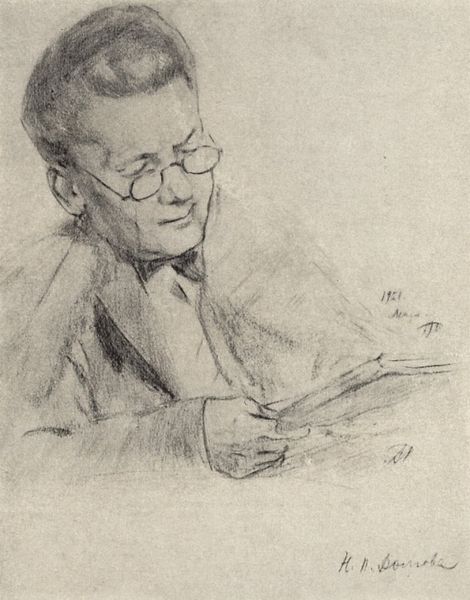 Curator: This is Sir William Rothenstein’s "Portrait of Sir John Rothenstein C.B.E." held in the Tate Collection; the support measures 762 by 495mm. Editor: It feels very still and contemplative, doesn't it? He's so engrossed in whatever he's holding. Is that a letter or a manuscript? Curator: Actually, it appears to be a book and a pen. It's fascinating how Rothenstein, himself a prominent figure in the art world, depicts his son, also a director of the Tate. Editor: Makes you wonder about their relationship, doesn't it? Or perhaps about the weight of legacy and expectation in the art world. It has this beautifully understated quality, almost shy. Curator: The production process is quite interesting when we look at it through a materialist lens. The visible brushstrokes, the texture of the paint... it speaks to the labour involved in creating the image, and the status of the sitter. Editor: Yes, and capturing that quiet moment, it's lovely. I find myself wondering what the portrait meant to them, both father and son. Curator: Considering the social context, it is a profound visual document. Editor: Absolutely, thank you for pointing that out. It’s all very touching, isn’t it? A father capturing a son, the passing of time and tradition...