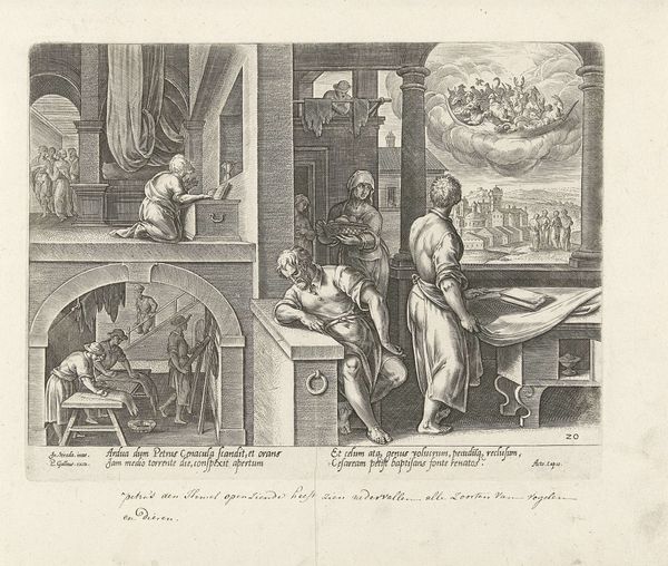 This is an engraving, made by an anonymous artist. Look closely, and you’ll see the artist has used line after line to create this composition, pressing a sharp tool into a metal plate, inking the surface, and then transferring the image to paper. This highly skilled process allowed for the relatively quick reproduction of images, aligning with the rise of print culture during this period. Observe the busy scene depicted here. It seems to show a biblical vision. What might the labor and material processes depicted here tell us? Consider the act of cleaning, indicated by the figure laundering in the foreground. We can see how the artist carefully rendered the folds of the fabric, giving it a tactile quality. Engravings like these demonstrate the deep integration of craft and art. They challenge us to think about the many hands and processes involved in bringing images like these into being, and how their circulation shapes social values.