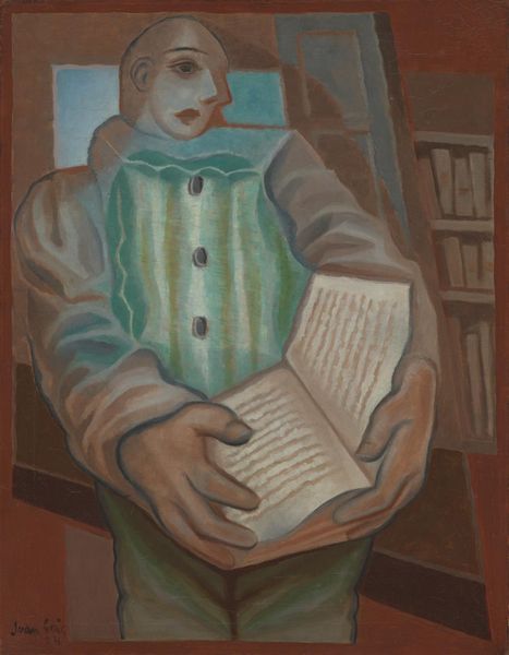 Curator: This image pulls me in with its quiet intensity. There's such weariness emanating from this figure. Editor: Well, let’s dive into it. We’re looking at “Man Reading” by Sarkis Sarkisian, created in 1938. It appears to be a tempera print. Curator: Yes, tempera gives it that matte, almost earthy quality. Look at how the light and shadow are blocked, almost sculptural. There's a raw feel to the printing too. Editor: You see that starkness, I see the impact of the printmaking process itself. A tempera print suggests accessibility, a wider distribution than a unique painting. It's art for the people, made using simpler materials. I'd be curious to examine the quality of the paper itself – its texture and composition. That can also say much about the artist’s intent and economic realities during that period. Curator: Absolutely, but beyond the physical, consider the symbol of the open book. The knowledge it represents, perhaps the weight of responsibility. Look at his posture, head in hand. He is lost, tired, and maybe disillusioned with the knowledge he possesses. This connects to the era. 1938 wasn't a peaceful time and that heaviness surely shows itself in the imagery. Editor: A potent reminder that art doesn't emerge from a vacuum. It is also interesting to observe the stylistic decisions informing this portrait and its realism. Those choices are revealing on their own. Curator: Right. The realism, particularly in the man's features, suggests a desire to depict the everyday human, perhaps a social commentary. Editor: Considering that context, examining the labor involved in its creation and intended consumption gives more insight than any reading of literary symbolism. Curator: A sobering thought, placing process before interpretation but one well worth taking on board! Editor: Indeed, a material analysis enriches the artwork and highlights labor concerns during its creation and consumption, in addition to any personal or artistic consideration. Curator: Seeing it this way broadens the way I see art connecting with society and individuals. Editor: Agreed. There's a potent intersection here between materials, means and messages that lingers with me.
