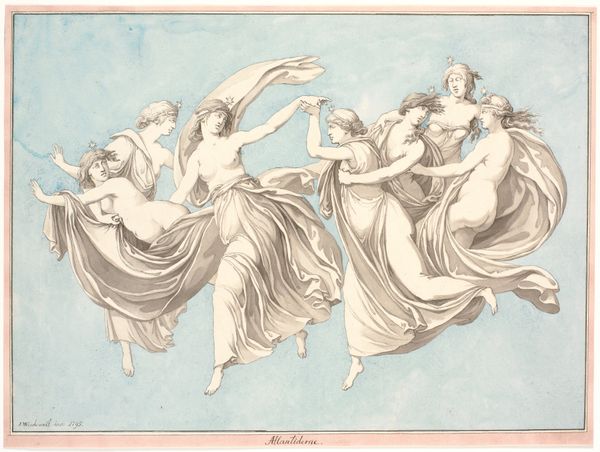 Curator: So melancholic, isn't it? The quiet tragedy of wanting something—no, *needing* something—so desperately it alters your very self. Editor: I see what you mean, but immediately I’m struck by how the rendering and reproduction through drawing and print emphasize accessibility, offering a Romantic ideal to a wider 19th-century audience beyond oil painting. Let's give our listeners some background. This piece is an illustration for Hans Christian Andersen’s "The Little Mermaid" created between 1870 and 1873 by H.P. Hansen, residing here at the SMK. It employs ink, predominantly, and embodies both the drawing and print mediums. Curator: Perfectly stated! And yes, there’s the tale laid bare: our little mermaid hesitantly stepping onto the shore, assisted—or perhaps haunted—by winged figures as she confronts her destiny. Her pale, unclothed form signals vulnerability; a tangible contrast to the story's often brutal exchange. What do you make of the multiple nude bodies on the coast? Editor: Beyond a symbolic reading related to Romanticism or a study of "nude" figuration, it shows a fascination for the production of bodies; that is, not just representations of flesh but images made for an economy of vision. The linear precision and repeatable form of "print" would have been paramount in its production. One wonders: were the laboring bodies that produced the print celebrated like this rendering? Curator: An excellent consideration. Perhaps the illustration softens a harsh reality by presenting beauty divorced from worldly labour. Editor: Quite possibly. Yet, the drawing process also serves a key function for the print economy; what the artist draws has an important connection to the reproducibility that the machine offers. It highlights a material transition from artist studio to broader publics. Curator: Well, Hansen manages to pull us into that crucial moment of transformation—isn't that what good stories are meant to do, to render magic believable through pen strokes? Editor: Precisely. By delving into these narrative tools, we unravel just how Andersen's poignant world, realized in print, reached and moved its contemporary audiences so effectively, as a consequence of material processes, rather than raw imagination.