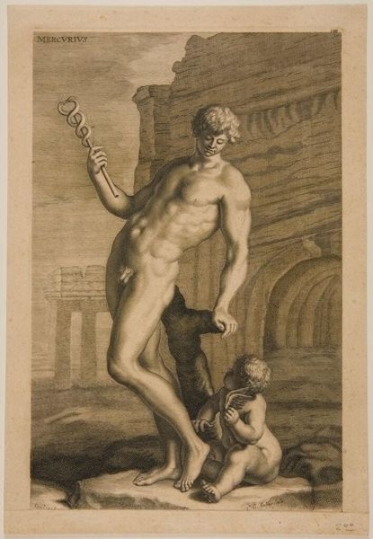 This is Giovanni Battista Piranesi’s engraving, "Silenus with Bacchus." Observe the striking contrasts in texture and tone. Piranesi masterfully uses hatching and cross-hatching to delineate form and create a sense of depth, contrasting the smooth skin of the figures with the rough bark of the tree trunk. This contrast is not merely decorative; it reflects a broader artistic and philosophical concern. Here, Piranesi engages with the tradition of classical sculpture, yet through the starkness of his engraving style, he destabilizes established meanings. The hyper-detailed rendering of muscle and form, combined with dramatic shading, creates a tension that challenges fixed categories of beauty and representation. The semiotic system at play reveals a fascination with the interplay between nature and culture, embodied in the figures of Silenus and the infant Bacchus. The meticulous rendering of detail functions as more than just an aesthetic choice. It highlights the ongoing tension between classical ideals and the complexities of human experience. Art, as Piranesi presents it, remains open to interpretation, a site where meanings are continuously negotiated and redefined.