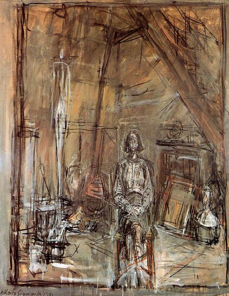 Editor: This watercolor painting is titled "Interior" by Jesús Meneses del Barco. It depicts a rather dim, cluttered room, and I get a sense of abandonment from it. How do you interpret this work? Curator: That feeling of abandonment is palpable. Look at how the light, or lack thereof, seems to suffocate the space. Genre paintings often documented social settings, but this particular scene feels far removed from social interaction. It looks like a workshop. Who would be working there, and under what conditions? Consider the period. How would you describe the gendered division of labour in that era? Does the object resemble tools? It almost seems frozen in time. What are your thoughts? Editor: That’s interesting. Thinking about who might occupy this space, I suppose, changes my perception. It stops being just an empty room and becomes a place of labor, even exploitation, maybe. Curator: Precisely. The painting can serve as a lens through which we examine the societal structures and power dynamics present at the time of its creation. It challenges us to consider not just the aesthetics but also the narratives of marginalization and labor practices it subtly reveals. Editor: I hadn’t considered that before. Thanks. It makes me think differently about art's role in reflecting and questioning society. Curator: And perhaps in igniting change? Considering this image in the context of labor history encourages viewers to reflect critically on social justice and economic disparity. It's an invitation to remember the unseen individuals who were impacted and recognize how their experiences have molded the path we tread today.