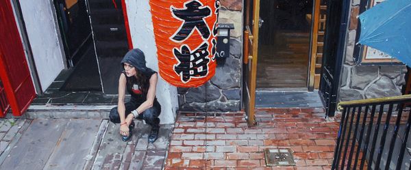 Editor: So, this is "Red Facade in China Town" by Vincent Giarrano. I'm really struck by the, almost overwhelming, redness of it all. It's vibrant and feels incredibly alive, yet also sort of claustrophobic. What jumps out at you? Curator: It’s a delightful paradox, isn’t it? That red hits you like a gong, demanding attention. It’s more than just a color; it's a statement. The artist isn't just painting a building, but a whole cultural energy, condensed and presented with incredible focus. And look closer: it is not ONE shade of red, but variations – implying vibrancy AND a sort of decaying reality, what do you think? Editor: I see what you mean! It makes it seem almost…unreal. Like a film set. And it kind of tells a story about the history layered within this one facade. Curator: Precisely. The layering. That is so, so key. Giarrano isn’t just showing us Chinatown, he's hinting at time itself, those years of accumulated stories and human dramas, all etched onto those bricks and shop signs. Like an urban palimpsest, rubbed raw to show many earlier layers underneath the visible surface. The red is almost protective in its brightness...a loud invitation. Editor: I hadn’t considered it like that. I was too caught up in the surface! This is incredibly helpful and I will remember this approach as I visit other Chinatown locations and photograph/document/critique. Thank you for opening my eyes! Curator: My pleasure! May this moment make your viewing (and creative endeavors) much richer moving forward, always.