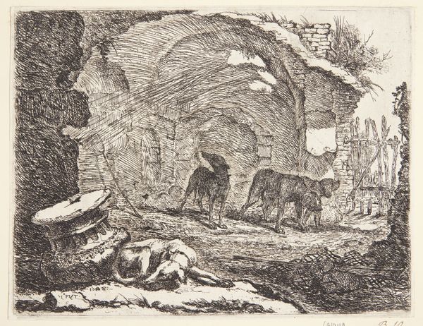 Cornelis Visscher created this etching, "Landscape with woman feeding her child," in the mid-17th century, a period when the Dutch Republic was a major economic and artistic force. In this pastoral scene, Visscher delicately renders the interplay between humans, animals, and nature. The woman feeding her child becomes a focal point, a depiction of the everyday, elevated through art. But what does it mean to portray the common, rural family? The Dutch Golden Age saw the rise of genre painting that often reflected the values and the social structure of the time. It emphasized the role of women as nurturers. Yet, consider the emotional weight carried by images of motherhood, especially in times of high child mortality. Here, the quotidian task of feeding a child becomes a profound statement about life, continuity, and the intimate connection between mother and child. Visscher transforms this image into a meditation on the fundamental aspects of human existence.