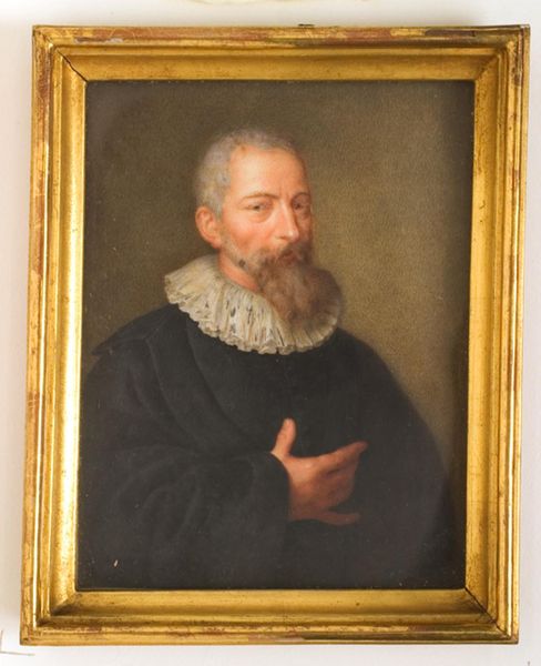 Christiaan Julius Lodewijk Portman painted this intriguing portrait of an old man in 17th-century dress using oil on panel. The composition, dominated by dark tones, focuses our attention on the subject's face and the stark white ruff around his neck. This dramatic contrast immediately creates a focal point. Portman's brushwork is meticulous, capturing the texture of aged skin and the intricate folds of the ruff. The artist uses a chiaroscuro effect, with light and shadow playing across the face, adding depth and a sense of introspection. The man's 17th-century attire is not merely decorative, but a sign, laden with cultural and historical meaning. By placing his subject in historical garb, Portman is playing with notions of temporality and representation. The artist invites us to contemplate the relationship between past and present, questioning how we construct identity through historical symbols. The painting's formal qualities serve a deeper conceptual purpose, reminding us that meaning is not fixed but actively constructed through visual signs and their interpretation.