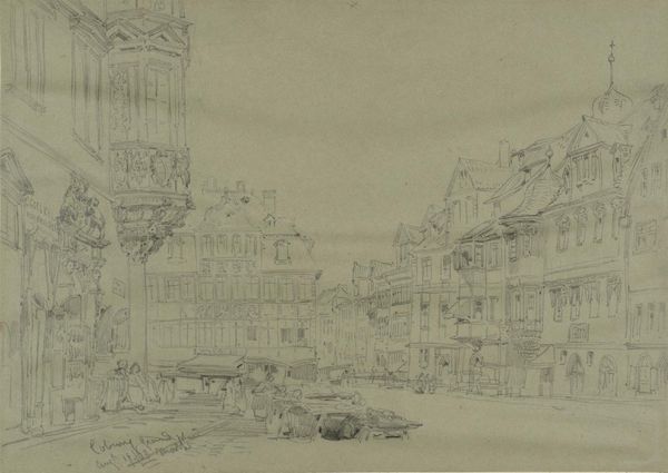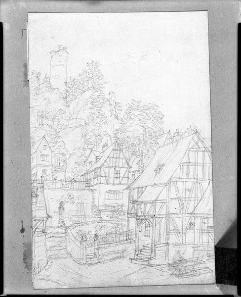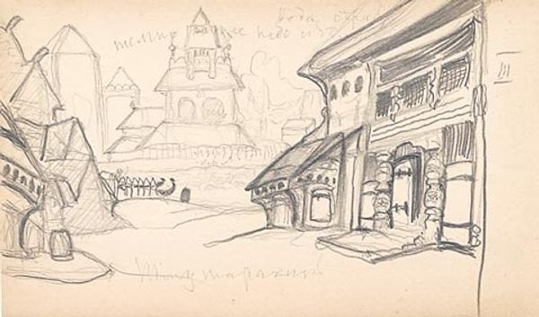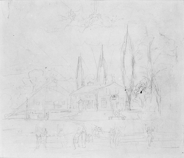 Editor: This is Childe Hassam's sketch, "The Little Church Around the Corner," made with graphite on paper. It feels like a quick study, capturing a moment in time. What strikes you about the process or the materials used? Curator: The visible labor is key here. Hassam’s choice of graphite, a readily available and inexpensive material, democratizes the image. It moves away from the preciousness of oil paint, aligning the subject, a church embedded in the urban fabric, with the everyday experiences of its inhabitants. Editor: So, it’s not just about the church itself, but how it relates to the city and its people? Curator: Precisely. Consider the mass-produced nature of graphite itself. How does that influence our understanding of artistic production and consumption at the turn of the century? Editor: I never thought about it that way before; seeing the connection between material and message is eye-opening. Curator: Indeed, Hassam's choice highlights the accessibility of both the image and the institution it depicts within the burgeoning urban landscape.
