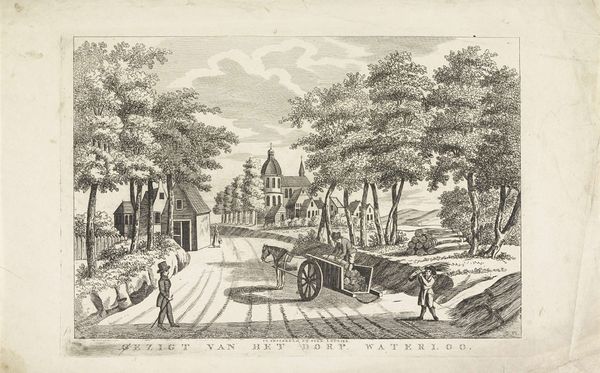 Curator: This drawing, titled "Gezicht op de Benschopperpoort in IJsselstein," captures a tranquil scene, probably from between 1750 and 1850. Editor: It's such a quiet piece. The muted graphite, the way the sky almost mirrors the land—it evokes a feeling of serenity and the passage of time. Curator: You know, it’s interesting how the artist, who remains anonymous, used graphite to create this incredibly detailed landscape. The Benschopperpoort, the windmill... Editor: It makes you think about movement and stillness, right? You have the solid structure of the gate, the constant motion of the windmills, and the people on the road. It almost feels like a frozen moment in a world that's very much in flux. The landscape style evokes an important sense of place within that era of rural life. Curator: Absolutely, it feels like an invitation to contemplate how people interacted with their environment. And there’s also something inherently democratic about landscapes, don't you think? Everyday life is as important to the artist as religious figures or political events. Editor: Definitely. And in that “everydayness” there's a subtle political statement about land use, about the value placed on rural labor, even if it’s presented in such an understated way. There are very few signs of progress, even, except for perhaps the windmills; it suggests the importance of continuity, even the preciousness of the familiar. Curator: Well said! And, from a purely aesthetic perspective, the artist's rendering of the clouds is gorgeous—delicate but with presence. There is also something haunting in the fact that we do not know who created this; it is unsigned work, and this enforces my sense that landscape artwork is so concerned with capturing things we risk losing: traditions, the land, and simpler times. Editor: I agree, it feels important that it remains unsigned, doesn't it? Ultimately, what we are seeing in this moment are the memories and movements, frozen in time and captured with incredible, ghostly detail. It's beautiful, though in such a still fashion.