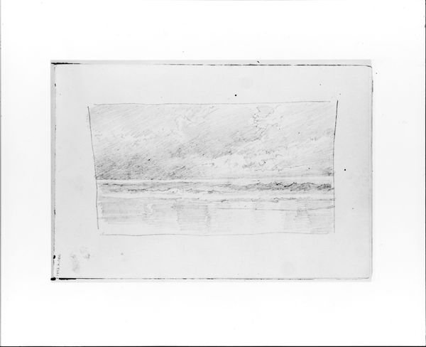 William Trost Richards created this small pencil sketch called "Seascape" as part of his Sketchbook VII. The composition is simple, dominated by horizontal lines that delineate the sky, sea, and shore. The limited tonal range focuses attention on the artist's use of line and texture to convey depth and movement. Richards' sketch can be understood through the lens of formalism, where the artwork's meaning is derived from its intrinsic visual elements. The repeated horizontal strokes create a sense of rhythm, echoing the constant motion of the sea. The subtle gradations in tone, achieved through varying pencil pressure, suggest atmospheric perspective. The closely spaced, darker lines at the bottom anchor the composition and provide a sense of grounding. This emphasis on the formal elements aligns with broader artistic and philosophical concerns of Richards' time. By reducing the seascape to its essential linear components, Richards invites us to contemplate the fundamental structures that underpin our perception of the natural world. It's a reminder that art is always open to interpretation, shaped by both its formal qualities and the viewer's own unique perspective.