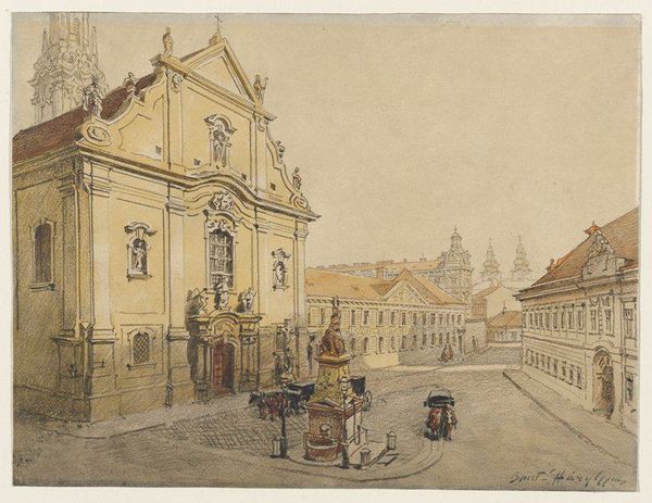 Fyodor Alekseyev made this watercolor painting, Novaya Square, in Russia, but the exact date is unknown. Observe how the watercolor medium allows for a delicate rendering of the architectural forms, capturing the subtle variations in light and shadow across the square. Alekseyev uses thin washes to create a sense of atmospheric perspective, with the buildings in the distance appearing softer and less defined. The layering of colors and the controlled application of water have imbued the artwork with a sense of depth and realism. It’s interesting to think about Alekseyev's mastery of watercolor as a skilled tradition. Watercolor was employed for topographical and architectural studies, alongside fine art practices. The precision and detail evident in this painting suggest Alekseyev's training in both artistic techniques and architectural representation. Considering the wider social issues, the painting invites us to reflect on the relationship between artistic skill, labor, and the representation of urban space in 18th-century Russia. It challenges distinctions between fine art and craft.