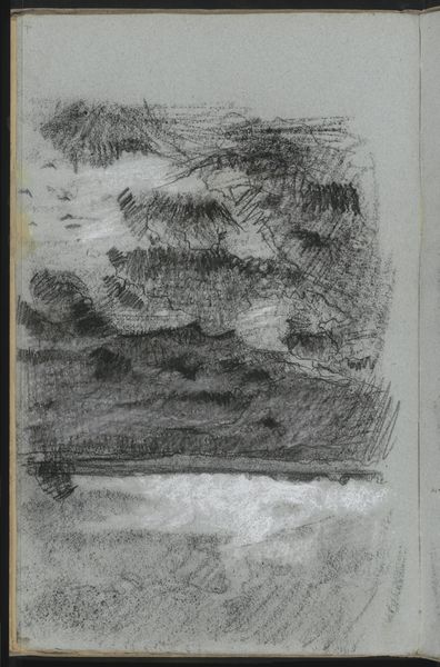 Curator: This is Willem Witsen’s "Landschap met bebouwing," a landscape drawing rendered circa 1887-1888. Editor: My initial impression is one of stark contrast. The piece appears almost divided; a dark, dense forest against a much more open, lightly sketched area. There's an unsettling feeling—an emptiness perhaps. Curator: Note how Witsen masterfully uses graphite and charcoal to achieve this very dichotomy. The thick, layered strokes on the left create a sense of depth and foreboding, almost swallowing the structures barely visible within. This use of chiaroscuro establishes the formal framework of opposing space within a relatively even pictorial plane. Editor: Right. It’s this use of darkness that I think speaks volumes. In late 19th-century Netherlands, the encroachment of industry upon the natural landscape caused significant disruption to rural communities and their ways of life. This imbalance—between the heavy darkness and the fragile light—visually embodies the disruption brought by the advance of modernity, which at the time had deeply unsettling implications on how humans would live and work. Curator: An insightful reading! Yet also, one should acknowledge the compositional devices which foreground this impression, if I may say so. Look at how the verticals of the trees mimic, yet distinctly contrast with the implied horizon, leading the eye directly into the heart of the work's formal questioning. Editor: While acknowledging the vertical dynamism you so rightly point to, one could view the image as reflective of broader anxieties regarding property and ownership at the turn of the century, as seen especially from the perspective of artists deeply attuned to societal injustices and land rights. It’s a picture, quite literally, about boundaries. Curator: Your sociohistorical insight adds a significant layer to interpreting this piece. Indeed, this drawing now suggests so much more than the sum of its lines and shading. Editor: And that's precisely the exciting and complicated beauty of art.