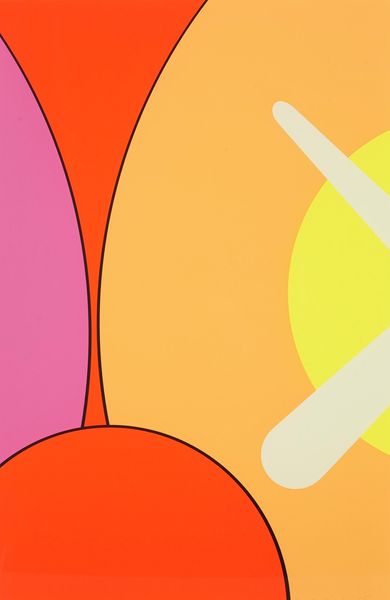 'No Reply #7' was made by Kaws using screen printing. Look how the colors sit next to each other, unapologetically flat. It's like the painting is saying, "Here I am! Deal with it!" The surface is smooth, almost like it was printed by a machine. The colors are bold and bright, like something you might see in a cartoon. But there's also something unsettling about it. The shapes are familiar, but they don't quite make sense. Take the blue cross for instance – it cuts right through the composition, disrupting the flow. It feels like a barrier, a wall. This push and pull between familiarity and estrangement is something Kaws does really well. He takes things we know and twists them just enough to make us uncomfortable. You might see echoes of artists like Keith Haring in the graphic sensibility. It's a reminder that art is always in conversation, borrowing and remixing ideas across time.