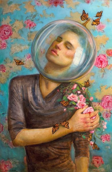 Soey Milk, born in 1989, created this piece called 'Green and Gold' with an intriguing blend of realism and abstraction. The composition centres on a woman in repose, surrounded by swathes of golden fabric and verdant foliage. This contrast of the organic with the geometric creates a rich visual texture, inviting contemplation. Notice how Milk uses colour and form to destabilise the boundaries between figure and ground. The golden hues of the fabric merge with the woman's skin tones, while the surrounding greens dissolve into abstract shapes. This interplay challenges traditional notions of representation. The semiotic weight of the colours is palpable; gold, a signifier of value and luxury, contrasts with the earthy greens, symbolic of nature and growth. Milk asks us to question the values we assign to beauty, nature, and artifice. This painting functions as a site where established meanings are constantly negotiated and re-evaluated.