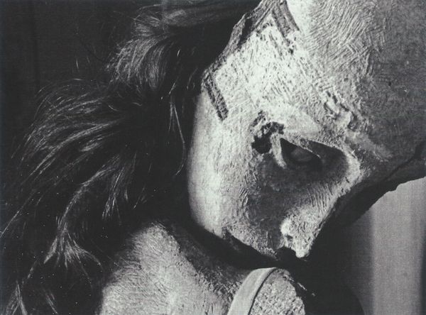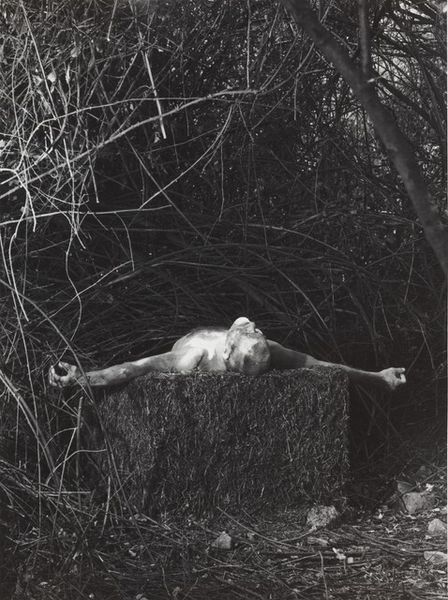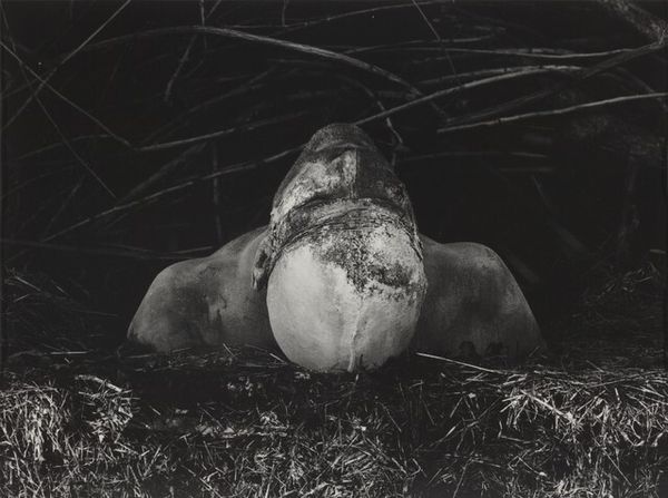 Dieter Appelt made this photograph, Erinnerungsspur--Statische Vibration, or Memory's Trace--Static Vibration, through a cameraless process, by placing objects on light-sensitive paper. The lack of color intensifies the image’s ghostly, unnerving quality. The texture is what gets me. See how the subject's head rests on what looks like bound sticks? The contrast between the smooth skin and rough wood creates a tension, a static vibration, like the title suggests. Those sticks look like they're both supporting and imprisoning, which is a heavy thing to think about. Appelt’s experimental approach reminds me a bit of Man Ray's Rayographs. Both artists embrace chance and process, pushing photography beyond representation. And like, what is the memory’s trace anyway? It’s not fixed, it’s always changing. Art doesn't need to give us answers, but it can ask those questions.