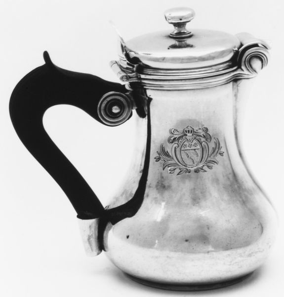 This teapot was crafted in the 18th century by Pierre Ducoing and is made of silver and wood. Note the elaborate cartouche engraved upon its surface, likely bearing a family’s coat of arms or initials. Such symbols, declaring lineage and status, are a recurring motif throughout art history. Think of the heraldic emblems emblazoned on medieval shields, each telling a story of valor and ancestry. Here, on this intimate object, the emblem speaks of domestic pride and social standing. Consider the teapot's handle: its graceful, arcing form reminds me of similar curves in ancient Greek vases. These shapes resonate through time, carrying echoes of past rituals. This object is not merely functional, it is also a vessel for social rituals. The act of pouring tea becomes a performance, laden with unspoken rules and expectations. It engages viewers on a subconscious level, connecting to our deep-seated desires for connection and belonging.