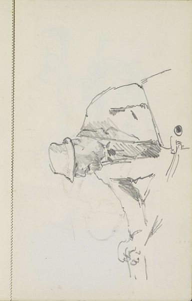 Curator: Up next we have a pencil drawing entitled "Jonge vrouw, in profiel," or "Young Woman, in Profile," by Isaac Israels, dated sometime between 1875 and 1934. It resides here at the Rijksmuseum. Editor: The first thing that strikes me is how raw and immediate this sketch feels. It’s unfinished, intimate even. There’s a casualness to it that I find quite appealing. Curator: Indeed. Israels’ loose handling of the pencil is quite remarkable. You can almost sense the speed and confidence with which he worked. Think about the paper and the access he had to such high-quality materials; this suggests a certain social standing for the artist. It is a far cry from art made by more accessible materials for everyday people. Editor: Absolutely. And that immediacy translates to an interesting depiction of his subject. Considering its era, do you think this was intended as a preparatory sketch, perhaps for a more formal portrait, or something conceived as an artwork in itself? I mean, think about the historical role of women being portrayed this way... it almost feels daring for its time. Curator: It is hard to tell what Isaac Israel truly sought to explore with the medium of his choice here. It definitely evokes a certain lightness, but I can see what you mean, though; the intimacy could imply a different power dynamic. Editor: Right. Maybe a more nuanced depiction of a sitter than traditionally seen in formally commissioned portraits. One thing's clear; it invites a more contemplative viewing experience. Curator: Definitely a divergence in how it uses artmaking materials to suggest meaning; even if a quick study, the image resonates. Editor: Overall, an artwork that provides a brief moment for pause.