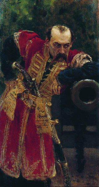 Konstantin Egorovich Makovsky painted this portrait of Prince P. Vyazemsky in oil, but its exact date remains a mystery. This is a depiction of aristocratic revelry, full of traditional Russian clothing, drinking vessels, and what appear to be serving staff or entertainers looking on. But is Makovsky offering a neutral depiction of Russian culture, or is he critiquing its rigid social hierarchy? The figure of the Prince is presented as central and important, and his clothing and goblet are finely detailed, yet there is something in the looseness of Makovsky's brush strokes that implies satire. When considering social conditions that shape artistic production, we might ask how artists in Tsarist Russia were dependent on commissions from wealthy aristocrats like Vyazemsky. What were the social expectations for painters working in this period? To understand the context, we need to look at Russian social history. The study of estate papers, personal letters, and the account books of artists and patrons can offer valuable insights. The meaning of this painting lies in that combination of historical context, and our own contemporary viewing.