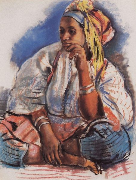 Konstantin Egorovich Makovsky painted this study of a Moor using watercolor to capture his elaborate costume. The turban, a headdress that has been a unifying cultural marker in various Islamic regions for centuries, signifies not just religious identity but also social status and trade connections. Observe how the turban’s presence echoes across epochs, from the wise men in Renaissance paintings to Ottoman dignitaries, each instance subtly shifting its cultural weight. Consider too, the vivid red of the Moor's trousers, a color laden with associations of power, passion, and exoticism. Red's journey through art history is complex, adorning emperors, warriors, and religious figures, each application layering new meaning onto its primal force. Here, it evokes the drama and intensity that Makovsky masterfully infuses into this figure, inviting viewers to contemplate the convergence of identity, representation, and the enduring power of symbols.