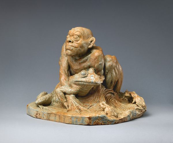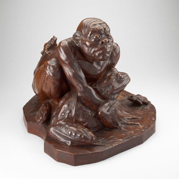 Here you can see a netsuke carved from ivory by the artist Masatami. The netsuke depicts a female monkey cradling a nut, while her baby crawls on her back. Netsuke like this one served a practical function in Japanese society; they were toggles used to suspend personal items from the obi, or sash, of a kimono. Beyond its utilitarian purpose, this netsuke offers a window into the complexities of gender roles and maternal identity. The mother monkey is portrayed as nurturing, holding both a nut and her child. Yet, the weight of her responsibilities is palpable. The baby monkey, seemingly unconcerned, adds to her burden. The carving thus speaks to the multifaceted experience of motherhood, capturing both its tenderness and its challenges. As such, it serves as a poignant reflection on the shared human experience of caregiving and the ways in which these roles are embodied and performed.