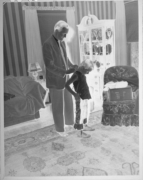Editor: This photograph, *Untitled (children playing with toys on couch)* by Lucian and Mary Brown, shows children in what seems like a domestic interior. The materiality of the couch is quite striking. What do you make of it? Curator: For me, it's about the means of production. The image is documenting labor, not just through the children's play, but also the labor of domesticity evident in the constructed environment. The image's very production and the chemical processes involved are themselves material acts. Editor: So, you are saying the photo itself is the most important aspect? Curator: Precisely. This isn't just a simple snapshot; it represents a confluence of labor, materials, and social context. What do you make of that materiality now? Editor: I see your point. It gives me a lot to consider.