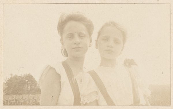 This photograph, Dubbelportret van Katy Engel en Hermien Marmelstein, was made by American Automatic Fotografie and captures two figures in a sepia-toned world. Look at the texture; it's not just in what's depicted, but also in the way the image itself feels aged and worn. There’s a kind of honesty here, a directness, no fancy retouching. You can almost feel the grit of the developing process, the slight imperfections that give it character. It reminds me of early experimental films, where the materiality of the medium is part of the story. Now, notice the soft blurring around the edges, like the world fades into a dream beyond the frame. The surface is smooth, yet you sense the layers of emulsion, the chemicals interacting to fix this moment in time. It makes you think about what’s visible and what remains hidden in any portrait. Think about how the quiet intimacy between the subjects is presented with a kind of formal, almost clinical detachment. It’s not unlike some of the work of Diane Arbus in its focus on the realness of the subject, but here without the same level of theatricality.