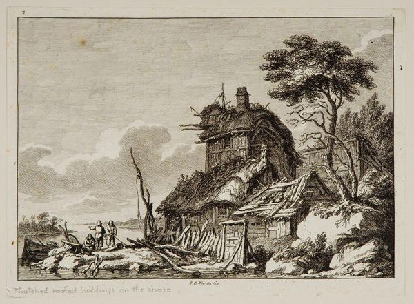 Editor: This etching, "The Stone Bridge" by Henri Mauperché, captures a pastoral scene. The detail is astonishing, especially considering its size. It almost feels like a memory, fading at the edges. What do you see in this piece? Curator: It whispers to me of Arcadia, a lost paradise. Look at how the artist contrasts the wild, untamed nature with the man-made bridge. Are those figures in the background? Perhaps we’re not so far from civilization after all. It seems that Mauperché invites us to wander in a landscape of the mind, not just the eye. Editor: I see that now! The figures add a touch of mystery, like a half-remembered dream. Curator: Exactly! And that bridge, a symbol of connection, or perhaps division? Art offers not answers, but echoes.