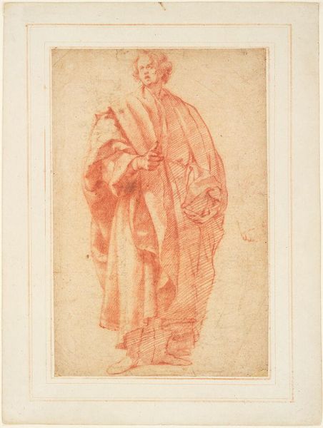 Editor: This drawing, "Doedelzakspeler," or "Bagpipe Player," by Hendrick Goltzius, from 1605, has a slightly haunting quality. The graphite strokes capture a moment, almost like a fleeting memory. What stands out to you in this piece? Curator: It's fascinating how Goltzius captures the musician, yes, but also an archetype. Bagpipes themselves are loaded with symbolism. They often represent revelry, folk traditions, and even a sort of earthy, untamed spirit. What emotional connections might Goltzius be making by focusing on the bagpiper and, in doing so, maybe invoking more ancient, pagan echoes? Editor: So, beyond just being a portrait, it hints at broader cultural themes and… a bit of wildness, perhaps? Curator: Exactly. Think of the historical context, too. Early 17th century, when art was often employed to reaffirm or even subvert existing hierarchies. This figure isn’t a king or a saint, but a common musician. He is a representation of the everyday and perhaps also, the disruptive power of music and tradition. He occupies liminal space between civility and bacchanal. Do you see the way the etching creates the illusion of texture here? Editor: Now that you mention it, there's a remarkable attention to the textures of his garments and instrument which reinforces this...earthiness? Curator: Yes. Textures connect us to something tangible and material. And within the visual language of art, we remember we’re also considering the culture that made that language. The player's slightly weathered face even suggests a life lived outside societal confines. It makes one consider all we build our sense of stability on: nation, creed, ritual, family. Goltzius makes us ponder. Editor: That's insightful. I hadn’t considered the bagpipes as a symbol with such a loaded history. It adds layers to the image beyond just being a depiction of a musician. Curator: Indeed. Art invites us to unpack the symbols embedded in our shared consciousness.