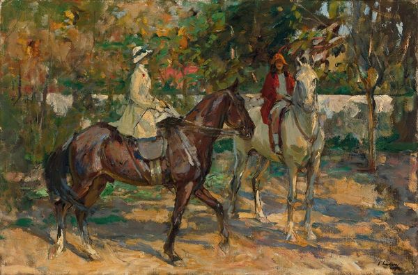 Curator: Standing before us is Mariano Fortuny Marsal's oil painting, "A donkey in a yard". Note the rapid brushwork—it possesses a very immediate quality. Editor: My first impression is of weariness. The donkey slumps against the fence, enveloped by a palette of muted browns and yellows, it's almost melancholic. Curator: The composition emphasizes the interplay of light and shadow. Observe how the artist manipulates texture, building up paint to create depth and surface interest. This manipulation contributes significantly to the image’s expressive power. Editor: The donkey itself has been a symbol of servitude, patience, and even foolishness across cultures for millennia. Does Fortuny employ it ironically here, a burdened creature amidst a seemingly pastoral, tranquil setting? Curator: The realism of the donkey, the fence and barn is broken by patches and flicks of the artist’s brushstrokes which form near abstract passages when viewed closely. I wouldn't overlook that. It’s tempting to draw lines to the impressionists. Editor: Perhaps that highlights a tension – this depiction of ordinary life also raises questions of hardship and endurance that go beyond the purely visual experience of the painting. Is it a commentary on man's relationship with animals, perhaps reflecting on exploitation? Curator: Ultimately, regardless of interpretation, the visual dynamic within the frame holds its integrity. The interplay between representation and pure form makes this quite arresting. Editor: Yes, there’s something universal in its subdued palette and humble subject matter. I find that lingering weariness more compelling now.