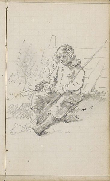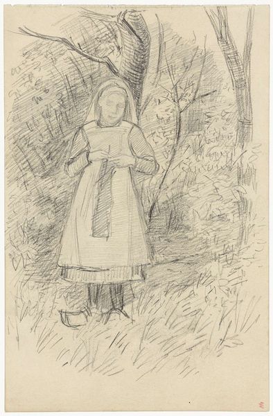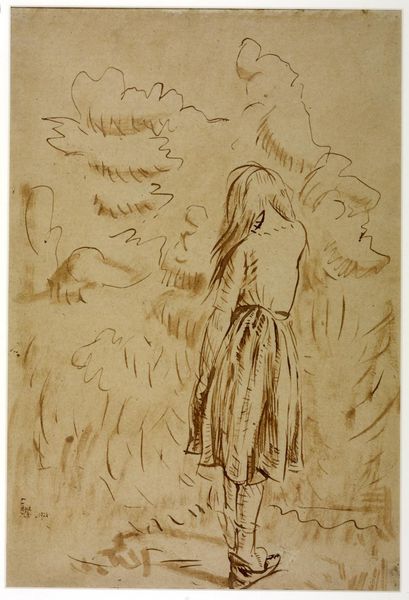Winslow Homer's sketch, "Girl Standing on a Swing," captures a moment of youthful contemplation with simple strokes on paper. The composition centers on the girl, her figure rendered with delicate lines that suggest movement and a quiet balance. Homer's strategic use of line directs our gaze. The verticality of the tree trunks and swing ropes contrasts with the slight diagonal of the girl’s body, creating a subtle tension. This interplay of lines and angles destabilizes the traditional portrait, infusing it with a sense of temporality and freedom. Notice the open space around the figure; it allows for a semiotic reading where absence becomes as meaningful as presence. Ultimately, the sketch's strength lies in its formal simplicity, which serves as a profound commentary on childhood and the ephemerality of moments. The sketch prompts us to question fixed meanings.