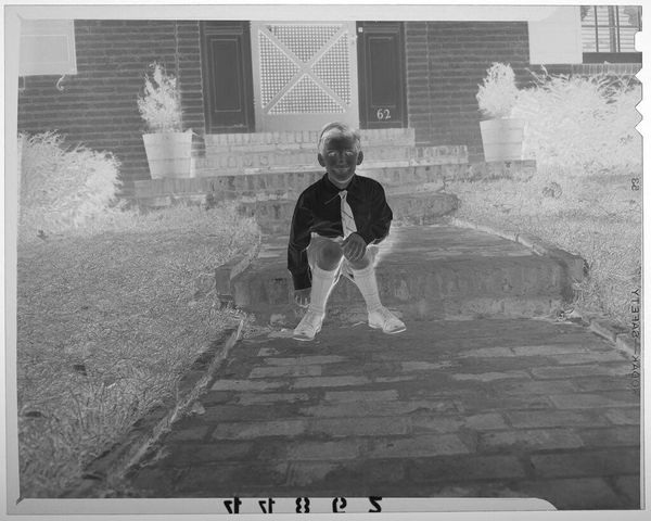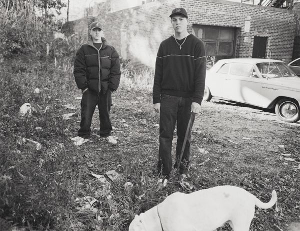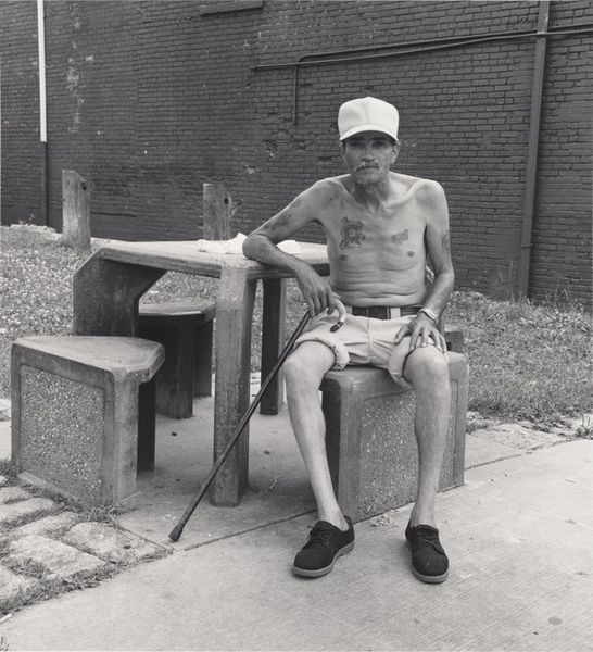 Curator: Milton Rogovin's portrait, "Jimmy Webster (Lower West Side series)" from 2002, captures its subject in striking clarity. What's your initial reaction? Editor: The black and white palette lends a strong sense of documentary realism, doesn't it? There's also a weightiness, almost a stoicism, in Jimmy Webster's stance. Curator: Rogovin's work, particularly this series, powerfully confronts issues of labor, class, and identity. He spent decades documenting working-class families, framing his work to be intentionally anthropological. Jimmy Webster and those like him are the subjects but it’s a shared narrative of their struggles. Editor: Right, and his methodology is really interesting when looking at that shared narrative. The material aspects jump out—the clothes Jimmy is wearing. This portrait is a study in textures, right down to the peeling paint of the house behind him and the snow. Curator: Absolutely, Rogovin’s empathetic approach gives his subjects agency; he challenges typical class portrayals, especially within discussions of late capitalism and urban decline, giving them a narrative voice through careful representation. It's a profound engagement with the lives and struggles of the marginalized. Editor: And how Rogovin chose to realize this is powerful; black and white photography’s intrinsic relationship with historical memory underscores this effect of witnessing, too. Curator: Precisely, Rogovin's work transcends mere photography. It offers a commentary on the intersections of poverty, labor, and urban life, resonating today, as gentrification erases whole working class existences. Editor: Looking closely, you really notice those worn and comfortable denim work pants Jimmy is wearing. There is a relationship to place through the physical objects of daily life and its surroundings. Curator: Indeed. Rogovin's unflinching portraits force us to confront systemic inequalities, reminding us of the shared humanity that transcends economic disparity and demanding social change. Editor: I am left contemplating not only Jimmy's lived experiences but how photographic representations help construct these memories. Curator: This photograph does the important work of reminding us.