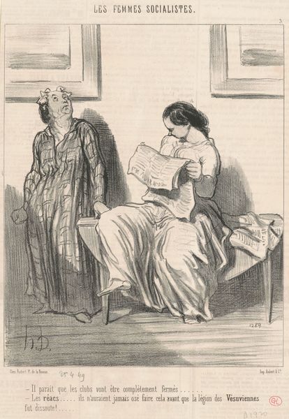This print, by Paul Gavarni, was likely made using a lithographic process. This method, which became widespread in the 19th century, involves drawing on a stone or metal plate with a greasy crayon, then using ink to transfer the image to paper. Look closely, and you can see the delicate lines and tonal variations achievable through lithography. The process allowed for relatively quick and inexpensive reproduction, making images like this accessible to a wider audience. Gavarni was a master of capturing Parisian life, and the print reflects the growing culture of mass media and visual consumption during the Industrial Revolution. Consider the social context: lithography democratized image-making, challenging traditional hierarchies between art and craft. Artists like Gavarni blurred these boundaries, using industrial techniques to create insightful commentary on contemporary society. So, next time you encounter a print, think about the materials, the making, and the broader cultural landscape that shaped its creation.