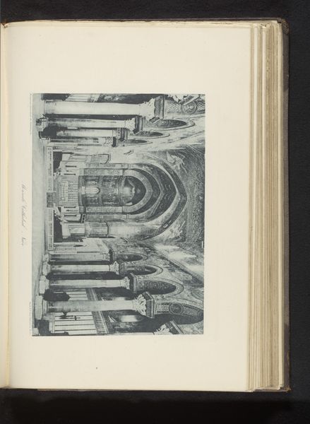 Curator: Let's discuss this image of the interior of Pisa Cathedral, created before 1886. It's presented as an engraving, emphasizing architectural detail through strong lines and perspective. Editor: Whoa. The engraving gives it this slightly haunted, dreamlike quality. It feels infinite, receding back and back. Curator: I agree; the manipulation of perspective is quite effective. The architecture becomes almost abstract, losing some of its historical context in the translation to a line drawing, becoming more about pure spatial relations. What sociopolitical statement do you think could be made about the function of the Cathedral? Editor: It almost dissolves the architecture into pure light and shadow. Look at how the linear design sort of vibrates. I start thinking about sacred spaces and the theatrical play of light, especially in relation to gothic cathedrals, playing into notions of reverence. You lose that physical weight—which I imagine such a space projects. Curator: Absolutely. The artistic style emphasizes form and line, reducing its weight. Its linear qualities encourage one to reflect on our secular interpretation of religious spaces: are they testaments to architectural feat or genuine connection? Or both? It could be critiqued that it is less about direct spiritual engagement and more an intellectual exercise. Editor: Yeah! And honestly? Makes me want to grab a sketchbook and lose myself in mark-making. Like, what if I blew this up into a huge charcoal drawing? What then? Curator: Precisely. This piece is more than the history of a specific cathedral interior—the anonymous print holds commentary on perception, artistry, and the intersection of past and present. Editor: I see what you mean; even removed from the context of religion, it has inspired its own artform outside the print and invites others to explore architectural abstraction, almost.