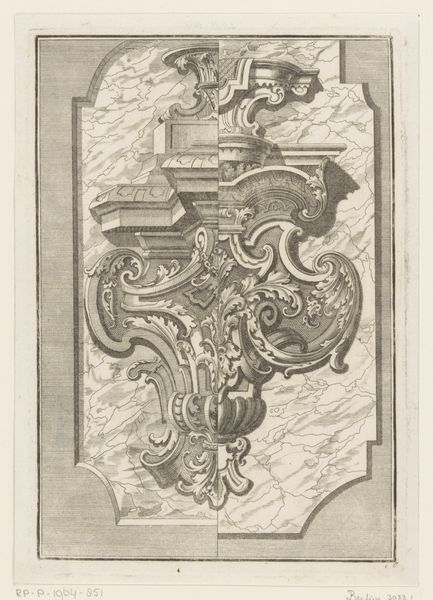 This is an engraving of a console, a decorative bracket often used to support shelves or other architectural elements. Created by an anonymous artist, the print exemplifies the elaborate ornamentation popular in European design. Pieces like this circulated widely as models for artisans. Consider how the ornamental console—with its swirls and foliage—served as a display of wealth, reflecting the social hierarchies of the time. Who had access to these designs, and who was excluded? This print embodies the complex relationship between art, access, and social status. Reflect on the labor embedded within its details. Who were the craftspeople who translated these designs into three-dimensional form? This print makes visible the circulation of images, while prompting us to consider the lives and labor of those who brought such designs to life.