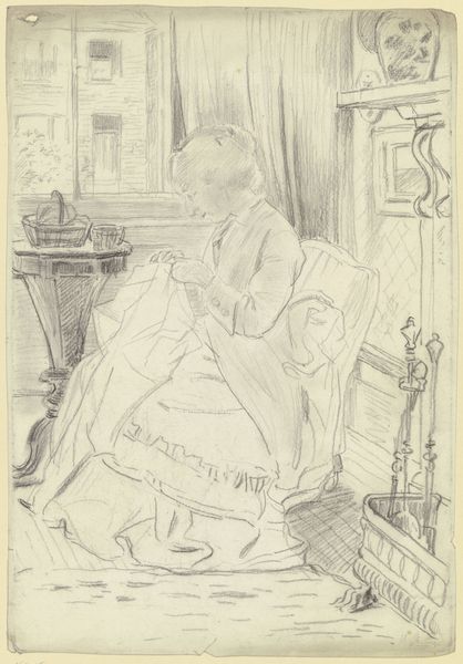 Curator: This intriguing pencil drawing, currently held at the Städel Museum, is by Wilhelm Busch and is titled “Stuhl mit ornamentalem Schnitzwerk,” or “Chair with ornamental carving,” and was created around 1854. What's your immediate impression? Editor: A certain fragile elegance strikes me first. The delicacy of the pencil lines, the airy rendering – it captures the ornate detail without feeling heavy. It is all about shape and line. The eye dances across the details of the ornamental carving, observing their unique design. Curator: It’s interesting that you call it fragile, because Busch made this sketch during a period when he was wrestling with ideas of German national identity and the burgeoning industrial age. What do the curves and carvings suggest within the context of design and societal change? Was he, like William Morris a few years later, responding against the aesthetics of mass production? Editor: Perhaps. Certainly, there’s a pronounced emphasis on form, and what might be called the 'chair-ness' of the chair. Observe how Busch articulates the differing textures - from the plush seat to the rigid frame. The hatching and cross-hatching generate the depth of field on the cushioned areas. Semiotically, we can see a focus on the essence of 'chair'. Curator: Thinking about essence, consider that domestic objects like this chair weren't merely functional; they communicated status and taste. Who would have been sitting in this chair? Who was permitted such rest? Busch came from a middle-class background; the nuances of class are interesting when we try to locate the intersection between craft, labor, and leisure this drawing seems to inhabit. The deliberate ornamentation becomes a symbol in itself. Editor: That’s a fair assessment. To bring it back to pure aesthetics, there's a satisfying balance between the spare lines of the chair's structure and the voluptuous curves of the ornamentation. Also, the way the sketch presents supplementary isolated ornamental designs directs our eye to their aesthetic independence from the rest of the whole. It makes the geometry even more obvious. Curator: Absolutely. It highlights Busch’s skill but also prompts us to consider the broader social theatre in which such designs operate. A stage for silent narratives. Editor: An intriguing visual artifact. It shows the marriage between design, objecthood, and societal projection. Curator: Indeed, seeing an otherwise common object reframed by the socio-economic circumstances allows for many points of reflection on a daily basis.