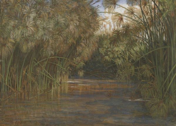 Editor: Here we have Robert Lewis Reid's "Meadow with Brook, Medfield, Massachusetts," created around 1909. The oil paint application gives the whole scene such a hazy, dreamy quality. What do you see in this piece beyond just a pretty landscape? Curator: It’s fascinating to consider Reid’s work within the broader context of early 20th-century American art. On the one hand it feels pastoral and removed, and we must ask to what degree is that deliberate. To what extent does it engage with the realities of the time, realities marked by industrialization, urbanization, and anxieties about a rapidly changing social fabric. Can landscape painting be read as a form of escapism, a nostalgic longing for a simpler, perhaps romanticized past, accessible only to the wealthy? Editor: That's an interesting perspective. I was just enjoying the pretty colours, to be honest. Are you suggesting that his choice to paint 'en plein air' contributes to this sense of privilege? Curator: Precisely. The very act of transporting oneself and one's materials to a rural setting, of having the leisure to observe and capture the fleeting effects of light and atmosphere, speaks to a certain level of economic and social freedom, especially given this time period when movements of peoples are tightly associated with race and socioeconomic status. Whose voices, and whose visions, are centered here, and whose are marginalized? Editor: So even something as seemingly innocuous as a landscape painting can carry complex social and political undertones. I’ll definitely look at landscapes differently now! Curator: Indeed. It encourages us to constantly question what is seen and what remains unseen, in art, as in society.
