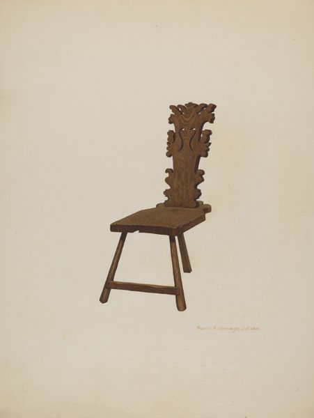 William Kieckhofel's watercolor painting of a chair captures a moment of quiet observation. The subdued palette, dominated by earthy browns and grays, creates a sense of warmth and familiarity. It’s not so much about showing off, as just appreciating a form. Up close, you can see the artist's hand in the subtle variations of tone and texture. The wood grain is rendered with delicate strokes, while the leather seat is treated with a more matte finish. The artist has paid close attention to the way light falls across the surface, creating highlights and shadows that emphasize the three-dimensionality of the object. Look at the scalloped edge of the lower support, it's not just a detail, it's a moment of playfulness. This piece reminds me of Fairfield Porter, in that it elevates the everyday to something worthy of contemplation. It’s a gentle reminder that art can be found in the most unexpected places, if only we take the time to look.