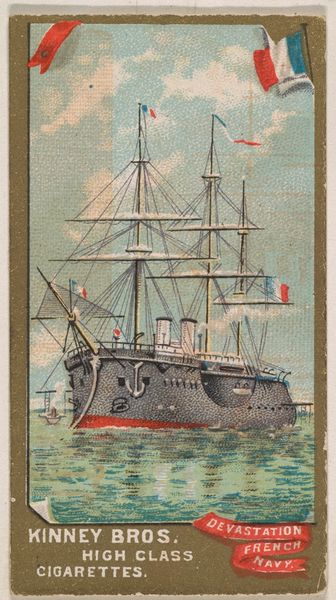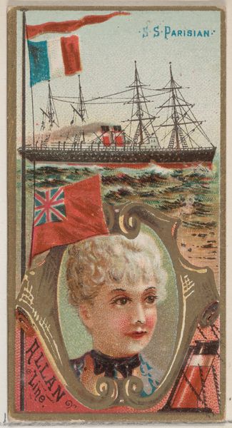 This is a cigarette card from the Ocean and River Steamers series, created by W. Duke, Sons & Co. Printed between 1888 and 1890, this card depicts the Steamship Hekla of the Thingvalla Line. These cards were designed to stiffen cigarette packs and entice consumers, feeding into the era’s culture of collecting. The imagery promotes both maritime travel and a romantic vision of women. The juxtaposition of the ship with the portrait of a woman situates her as both an object of beauty and a symbol of the journey the ship would undertake. It’s interesting to consider how these images perpetuated certain ideals of beauty and femininity, while also hinting at the larger world of travel and commerce. These cigarette cards, while small, offer a glimpse into the complex interplay of identity, consumerism, and cultural values of the late 19th century.