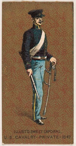 This small chromolithograph was printed as an advertising insert by Allen & Ginter Cigarettes in Richmond, Virginia. It depicts a man in a suit, identified as “American” on the card itself. The production of this card was intensely industrial. The chromolithography process involved creating multiple printing stones, one for each color, and layering them to create a complete image. It was a highly efficient way to generate visually appealing images in vast quantities. Allen & Ginter mass-produced these cards to stiffen their cigarette packs and entice customers, so production depended on low-wage workers performing repetitive tasks. But there's an irony here. The image seems to celebrate the idea of ‘American’ identity, while its production relied on industrial labor. This reveals the complex relationship between consumer culture, national identity, and the exploitation of labor at the time. By considering these factors, we gain a deeper understanding of the social and economic context in which this seemingly simple image was created.