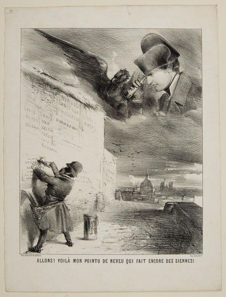 Editor: So, this is Honoré Daumier's "A New Way of Descending the River of Life." I don't see a date on it, and it looks like it's at the Harvard Art Museums. It’s definitely making me chuckle with all these capsizing boats and frantic figures. What's your take on it? Curator: Ah, Daumier. He's inviting us to laugh, but also to reflect. This lithograph is a biting commentary on Parisian society. See how the well-dressed are quite literally sinking? He's poking fun at their clumsy attempts to navigate, well, life. It's a watery metaphor, don't you think? Editor: I see that now! It's like he's saying they're all style and no substance, flailing about in the river. Curator: Precisely! And that little detail of the discarded hat? Such a small thing, but it adds a layer of social satire. It makes you wonder who will stay afloat and who will be swallowed by the current. It’s quite insightful!