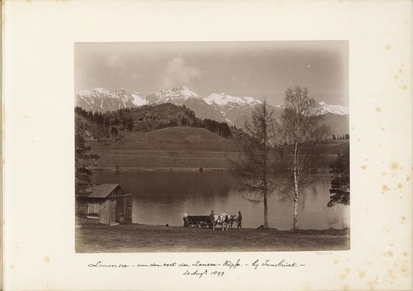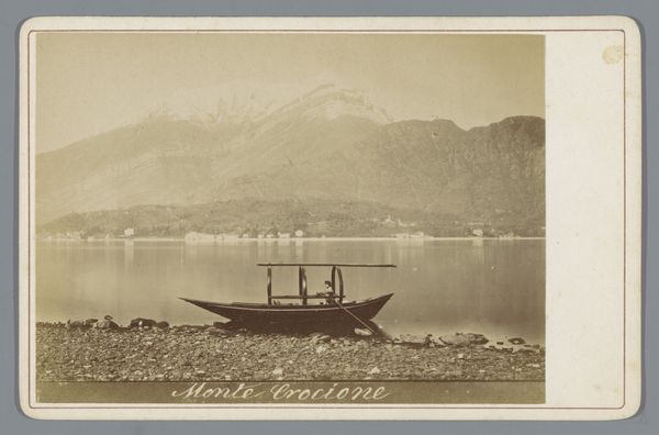 Editor: So, this is "Two Men on Lake Como with Bellagio," a gelatin silver print from 1898 by Bosetti. It has this really calm, almost hazy feel. The composition seems split between the natural beauty and the figures of the men. What do you see in this piece? Curator: It's interesting you point out the calm. This image, beyond its surface representation, taps into a visual language deeply rooted in cultural memory. Notice the deliberate composition: the figures are placed between the ‘primitive’ form of the boat and the promise of civilization offered by Bellagio. Don't you feel it’s not just about a landscape, but about the space *between* ways of life? Editor: That's a great point. I was focused on the men, thinking about their daily life, maybe fishing or transporting goods. I didn't consider the symbolism of the background. Curator: Exactly. The landscape itself becomes a canvas for projecting aspirations and societal hierarchies. This pictorialist style, with its soft focus, aimed to elevate photography to the level of painting, further embedding these cultural ideals. But does the haziness also soften a clear read, maybe letting individual hopes and anxieties in too? Editor: I guess the haziness invites more personal projection, definitely. Now I see how the whole image conveys more than just what’s depicted. Curator: The cultural significance really hinges on understanding those unspoken elements. We carry our historical understandings, often unconsciously. Images like this act as triggers to that subconscious cultural reservoir. And do you see any other elements, or perhaps emotions, subtly present in this tableau? Editor: It feels like a quiet moment, maybe even a bit melancholic. Curator: Perhaps a pause, pregnant with unspoken understanding of one's place in the order of things? It could speak volumes. Editor: It's amazing how much more there is when you consider the layers of meaning and symbolism beyond the surface of a simple photograph. Curator: Indeed! It reminds us that images are never neutral; they actively shape our perception and understanding of the world around us.