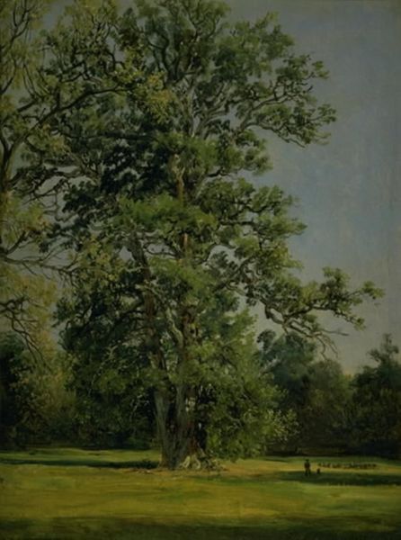 Editor: Here we have Christen Købke’s "The Garden Gate of the Artist's Home at Blegdammen," painted with oils on canvas around 1843 or 1844. I'm struck by how the wooden fence almost glows – the light just catches it in the most beautiful way. It’s like a portal. What whispers to you from this seemingly simple garden scene? Curator: A portal is precisely the right word! For me, this little painting is all about thresholds and transitions. The gate is both a barrier and an invitation, isn’t it? I feel invited into a secret, peaceful place that he knew intimately. Købke manages to transform the everyday – a familiar view from his home, mind you – into something quietly magical. Does the brushwork itself give you any clues? Editor: I notice how loose and almost impressionistic the leaves are, especially compared to the sharper lines of the fence. Curator: Exactly. This tension between realism and a kind of lyrical abstraction is pure Købke. There’s an intimacy in the scale, too; it invites a closer look, almost demanding a private moment with the artwork, don’t you think? Also, consider its creation during the Danish Golden Age, a period when artists focused on capturing the quiet beauty of their immediate surroundings. This garden becomes a symbol of national identity and personal sanctuary. What feeling does that evoke in you? Editor: I think I now see it less as a simple garden scene, and more as a window into Købke’s world and perhaps, Denmark at the time. A place of reflection. Curator: Absolutely. It's about finding the extraordinary within the ordinary. Maybe that’s the most golden thing about it.