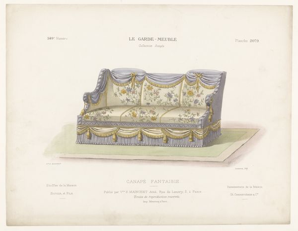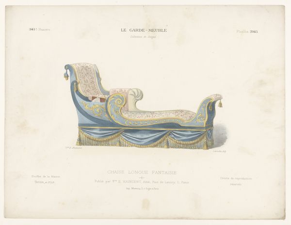 This print depicts a chaise longue and was produced by Léon Laroche as part of "Le Garde-Meuble", a French journal showcasing contemporary furniture designs. The image embodies the opulence and refinement sought by the upper classes. Cultural references such as the use of expensive textiles, tassels, and elaborate ornamentation, all speak to the desire for luxury and status. The historical associations of the chaise longue with leisure and privilege reinforce the social hierarchies of the time. "Le Garde-Meuble", as a publication, played a role in shaping the tastes and preferences of its audience, while also serving as a platform for designers to showcase their work and gain recognition within the industry. To fully appreciate the nuances of this image and its place in history, one would need to delve into the archives of design journals, explore period rooms in museums, and examine inventories of aristocratic households. Only then can we truly understand the social conditions that gave rise to such objects and the values they represent.