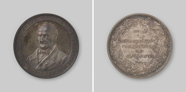 This silver medal, celebrating Friedrich Hagedorn's sixtieth civic anniversary, was crafted by Loos in 1844. The cool sheen of the metal, precisely struck into a circular form, immediately captures the eye. Looking closer, the coin’s structure reveals two distinct sides. One presents a high-relief profile of Hagedorn, encircled by text, a formal tribute to his person. The other side showcases a wreath of oak leaves framing commemorative text, interspersed with heraldic shields, perhaps representing different aspects of his life or affiliations. The choice of oak leaves is significant, symbolizing endurance and honor, qualities associated with Hagedorn's long service. The coin's circular shape promotes equality; the images on each side do not have hierarchy. The medal challenges the standard notion of representation by combining textual and iconic elements, it asks us to reflect on how societies commemorate individuals and events, using both image and word.