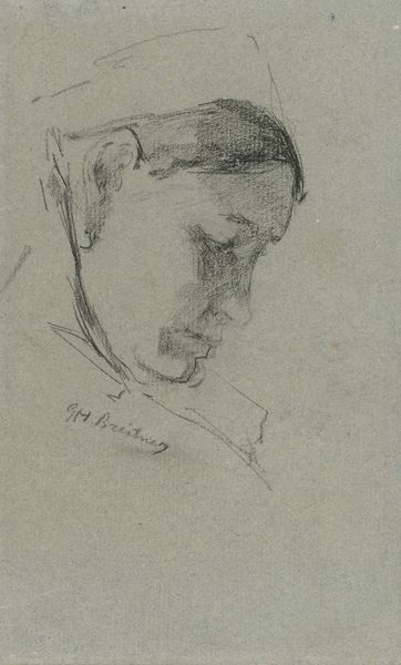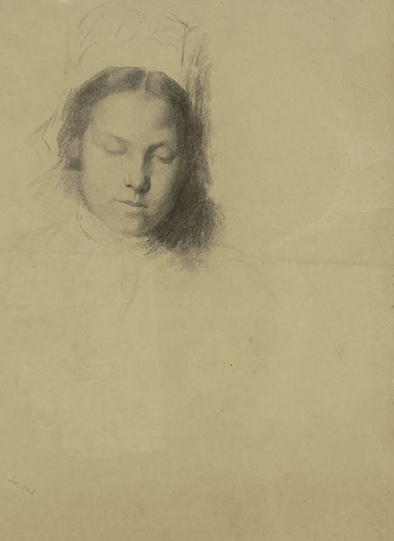 Curator: Odilon Redon's "Eyes Closed," created around 1890. It's a dry-media drawing, primarily pencil on paper, isn't it? The delicate hatching gives it such a quiet, almost ghostly quality. Editor: Ghostly is right. It has a strange, somber feel. It almost feels like the subject is turning inward, retreating from the world. I'm wondering, in what context was Redon producing these works? What larger conversations about identity and inner experience might he have been participating in? Curator: Well, Redon existed in a nexus of symbolist circles where material processes reflected a shift toward interiority. This era favored dry media because of their accessibility and tactile quality. Pencils, charcoal—these democratized artistic creation. Consider how industrialization had reshaped labor—such readily available materials altered artistic production. Editor: Absolutely. It’s impossible to detach this serene drawing from the era’s turbulent anxieties. The closing of the eyes – is that a rejection of the changing societal landscape around women? A reclamation of self in an increasingly surveilled, patriarchal society? Curator: Or is it perhaps simpler? We can look at the pigment’s granularity. These materials are often viewed as tools for sketches or preparatory works, rather than being the end product. But Redon elevates them to a final, finished state. We are forced to consider his choice of materials. What informed this conscious decision? Editor: True, but even within a deliberate act such as material choice, societal conditions always exert some influence. This period was rife with artistic and intellectual experimentation with the meaning of dreams and spirituality, fueled by political unrest, a rapidly modernizing Europe, shifting gender dynamics. The Symbolists turned to the intangible. Curator: I see what you mean. Regardless, Redon masterfully transformed humble materials into something hauntingly beautiful, demanding us to consider the artistic labor involved. Editor: Yes. Ultimately, though, the power here lies in that suggestion of inward retreat. Perhaps an enduring reminder of the need for interior space amid societal demands, expressed through humble materials, of course.