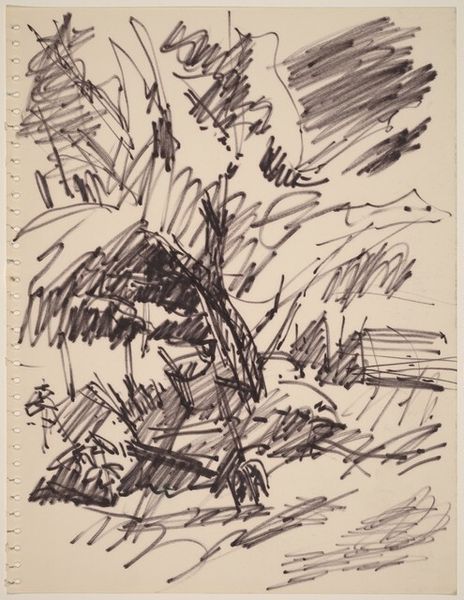 Editor: So, this is "Oriental Landscape with Two Riders" created by Hans Meid in 1913. It's an etching, so we are seeing a print created with ink. There's something incredibly evocative about this image – it feels like a dream, almost faded, the landscape blurring around these two figures on horseback. What strikes you about it? Curator: Well, it certainly has a whimsical quality, doesn’t it? It's like Meid captured a fleeting memory. To me, it speaks of longing. It whispers stories of romantic journeys to exotic, faraway lands. Notice how the sketchy lines create a sense of movement and instability, almost like the landscape itself is alive. Editor: That's interesting - longing and movement... I was so focused on the slightly out-of-focus quality of the work itself I almost missed that there were human figures depicted. Does that influence how you consider it as a depiction of a landscape? Curator: Absolutely. Their presence completely transforms the work. Imagine this scene without them: it would simply be trees and vague greenery, an "empty" scene, if that makes sense. But *because* they are here, the image takes on new and slightly sad possibilities, with perhaps an implication that humanity's destiny is to search, wander and wonder without arriving or resting. What do you think - could that be part of what Meid was getting at? Editor: That reading definitely enhances it! I initially perceived it as a scene, a depiction of a time or a place... but, hearing your comments I realize that Meid might have wanted it to function almost like a state of mind or spirit. Curator: Precisely! Art's best when it moves, right? Maybe Meid captured not just an image but the emotional resonance of such a landscape. Editor: Totally, this has opened up the print for me, seeing how those sparse lines and blurred figures invite you into a dreamlike space of yearning. Curator: Agreed. And for me, a reminder that even landscapes are about inner journeys, too.