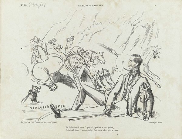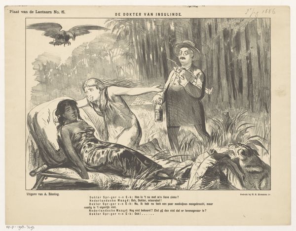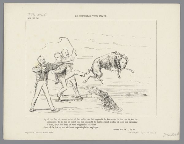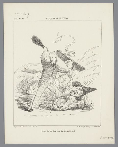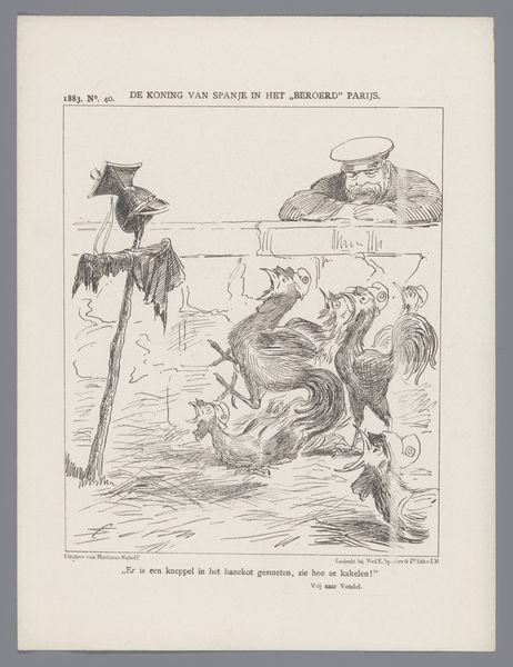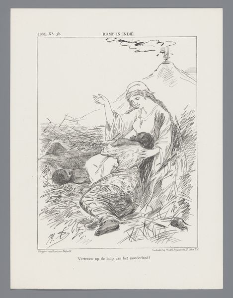 This political cartoon about the conflict in Aceh was made in 1882 by Johan Michaël Schmidt Crans, using ink on paper. Here, we see the stark lines of ink wash creating a scene of violence, emblematic of the colonial struggles in Aceh. The material—simple ink—belies the complexity of the message. It's a medium easily reproduced, allowing for wide dissemination of the cartoon's political commentary. The rapid, sketch-like quality of the drawing mirrors the urgency and brutality of the conflict. The choice of printmaking is significant, as it allows for a broad audience to view and engage with the cartoon's message. This accessibility is key to sparking public discourse and shaping opinions on the events unfolding in Aceh. The image's meaning is inseparable from the process that brought it into being. By understanding the means of production, we can fully appreciate the intent and impact of this work, recognizing its importance in the history of both art and social commentary.
