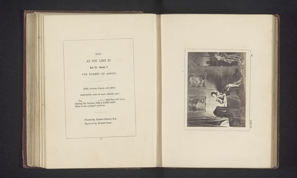 This is a photographic reproduction of an image, after a painting by Joseph Wright, depicting a scene from Shakespeare's play "The Tempest." Such a reproduction raises interesting questions about the social role of art, and its cultural context. We might ask, why reproduce this particular painting and for what audience? The very act of selecting Wright's image speaks to the perceived importance of both Shakespeare and visual art in 19th century Britain. This was a society that, through its museums and schools, was actively promoting a particular kind of cultural literacy. Note how this image makes meaning through recognizable visual codes: dramatic lighting, theatrical gestures, and a clear narrative. These elements speak to the aesthetic values of its time. To understand this work more fully, we would need to examine the history of Shakespearean illustration, the market for printed images, and the rise of photography as a means of cultural dissemination. Art history is about understanding how images participate in broader networks of social and institutional power.